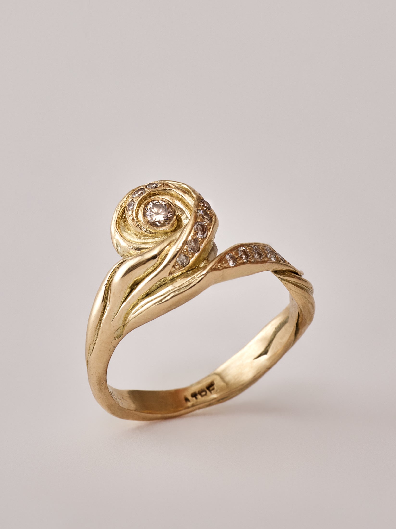 13 champagne diamonds in pavé and one champagne diamond centered in the middle. a total of 0,155ct