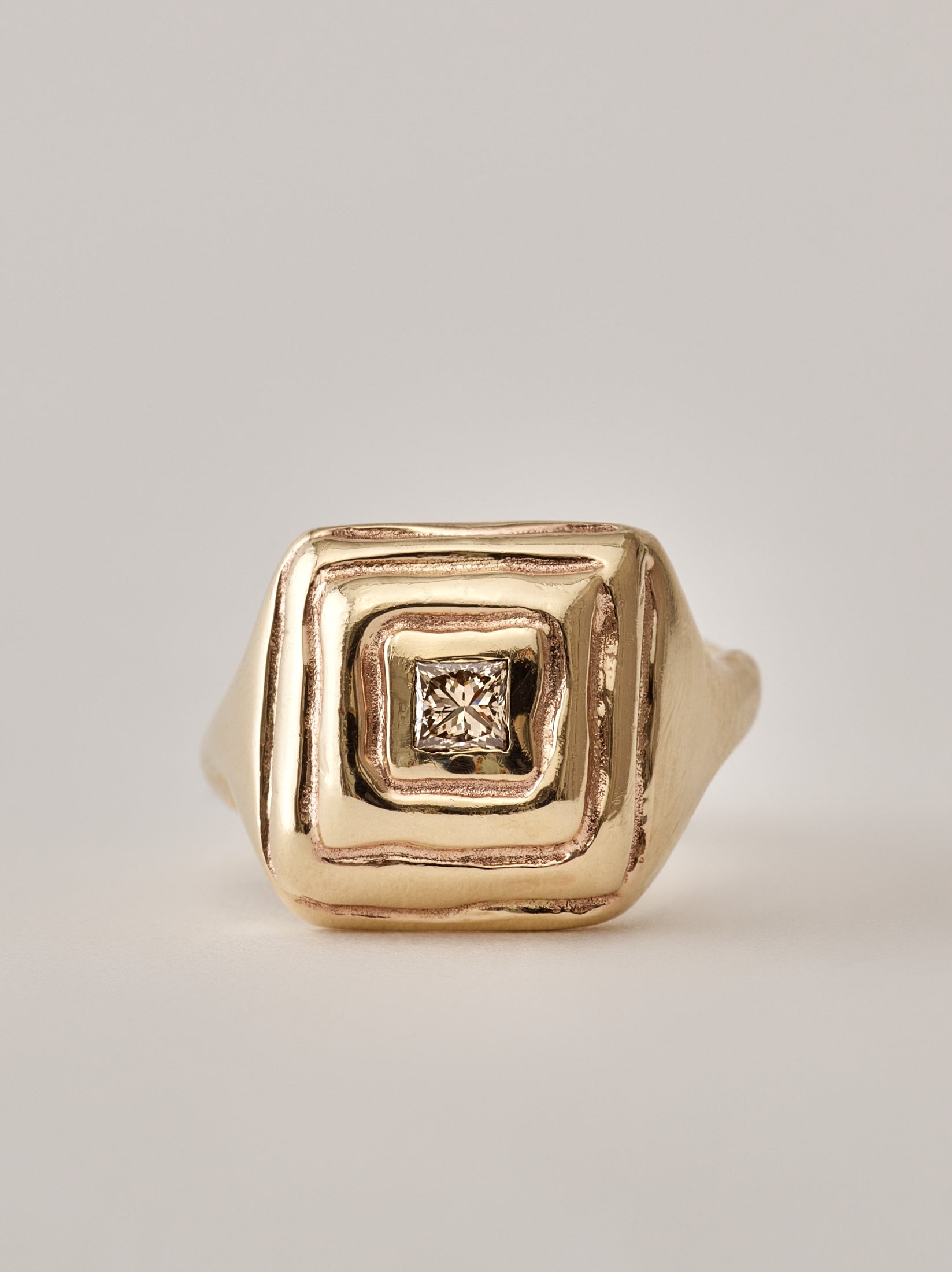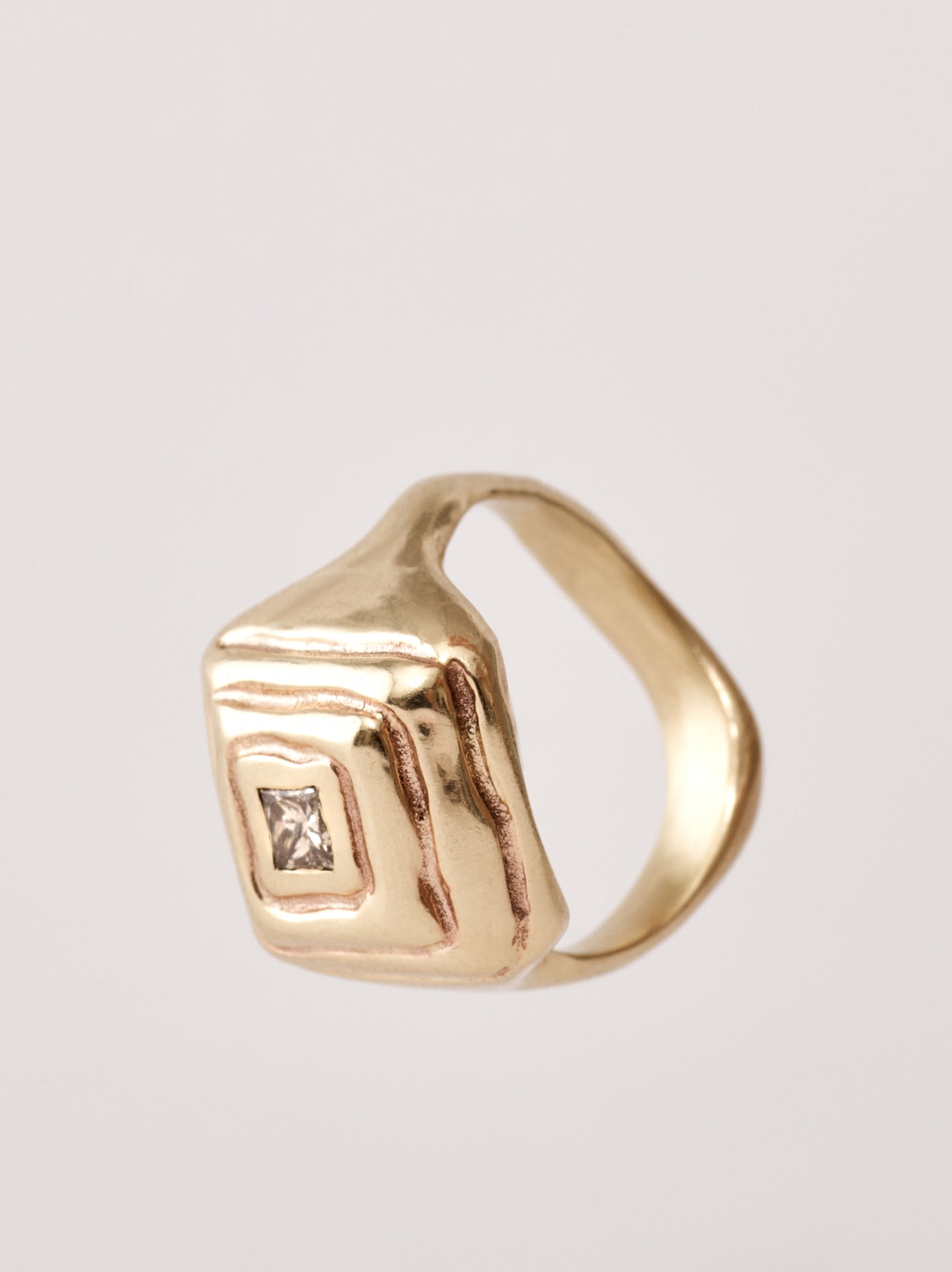 14k set with a square champagne diamond